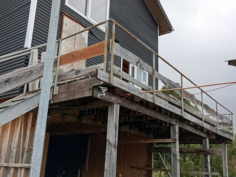 Disposición de la cabaña: Primer piso con base de radier, cerrado en 3 de sus lados y frente abierto para proyecto de terraza, quincho o negocio relacionado al turismo.